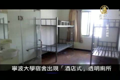 中國網路瘋傳一張據稱是寧波大學新生宿舍的照片,宿舍內出現「酒店式」全透明廁所,裡面有坐式馬桶、洗手檯及淋浴間,三面「牆」均用玻璃。