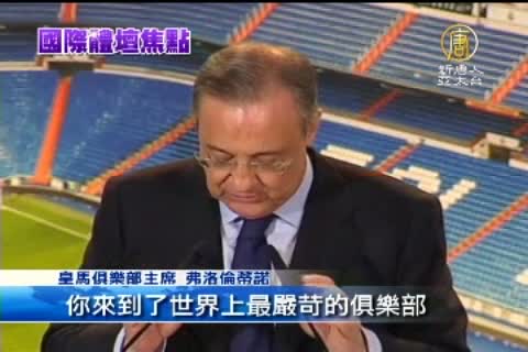 【新唐人亞太台2013年9月3日訊】西班牙足球皇家馬德里星期天(1號)證實了,已經以一億歐元的天價買下原本效力於英超球隊的新星球員貝爾。現年24歲的貝爾,擅長高速強行突破對手、以及處理自由球,為皇家馬德里效力一直是他的夢想,而根據合約,他將會待在皇馬6年,一億歐元的轉會天價也創下了紀錄。
