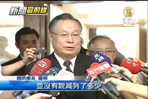 【新唐人亞太台2013年9月5日訊】立法院即將開議,剛接任國防部長的嚴明今天(5日)積極拜會國防委員會委員爭取支持,不過,103年度國防預算編列3千127億元,只占GDP 的2.54%,創下馬總統任內新低,不過嚴明澄清,總預算其實和去年差不多。