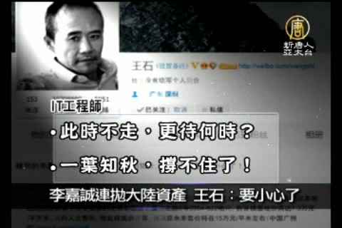 針對李嘉誠頻頻拋售陸港兩地資產,大陸著名萬科企業的董事會主席王石,發了一條微博說:「這是一個信號,小心了!」引起眾人討論。一位IT工程師回應,此時不走,更待何時?一葉知秋,撐不住了!