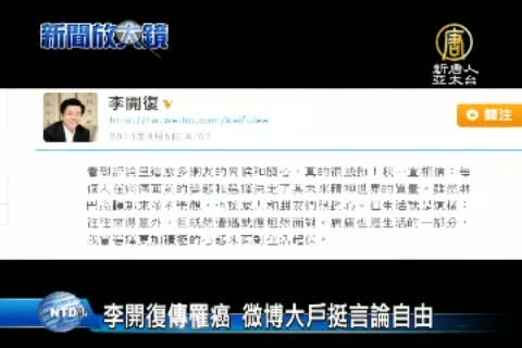 【新唐人亞太台2013年9月6日訊】大陸科技名人、前谷歌中華區總裁李開復,昨晚在微博貼文,暗示自己可能罹患淋巴癌,許多大陸網友留言送上祝福。以敢言出名的他,多次遭中共刪文、封微博、甚至被請喝茶,不過,他之前兩度來台灣,都與總統馬英九面對面會談,爭取言論自由的態度顯著。
