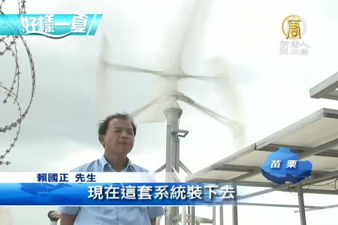 【新唐人亞太台2013年9月10日訊】綠能環保愛地球,是現在全球最夯的趨勢,不過究竟要怎麼樣將節能減碳付諸行動?我們帶您來看到苗栗有一位賴先生,退休後,在自己的家裡建起了風力和太陽能發電設備。這套設備,讓賴先生全家不但省下大筆電費,而且還住得很安心。