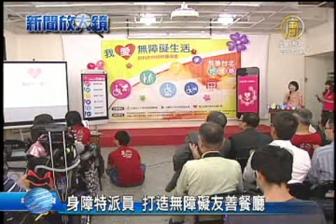 【新唐人亞太台2013年9月11日訊】身障朋友外出用餐、看電影都會受到座位和動線的限制,非常不便,為了改善情況,有數十位身障朋友就自己當餐廳特派員,實際到餐廳訪查環境,設計出一個友善餐廳的應用程式,希望靠自己的力量,可以打造完全無障礙空間。