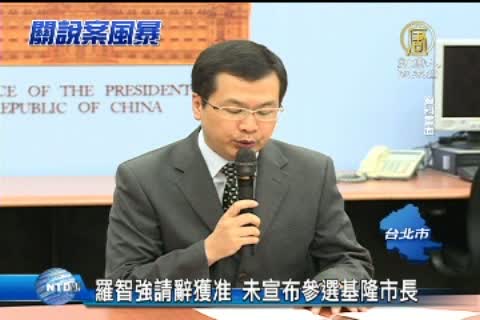 【新唐人亞太台2013年9月12日訊】繼續來看到,馬王「九月政爭」再爆震撼彈。總統府副秘書長羅智強今天向總統馬英九請辭獲准,羅智強在記者會中表示,暫時不會接任何職務,也沒有宣布參選基隆市長。而面對關說風暴持續震撼台灣政壇,今天最新公布的民調則是顯示:有高達七成的民眾,對馬英九總統的施政,不滿意。