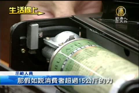【新唐人亞太台2013年9月13日訊】中秋節要到了,大家在烤肉時,會帶卡式瓦斯爐煮個湯或是泡個茶,但消保處抽查市售的卡式瓦斯爐,卻發現將近一半安全有疑慮,有的瓦斯會漏氣,有的沒貼警語,擔心民眾在使用上會有危險,消保處已經要求不合格廠商下架改善。
