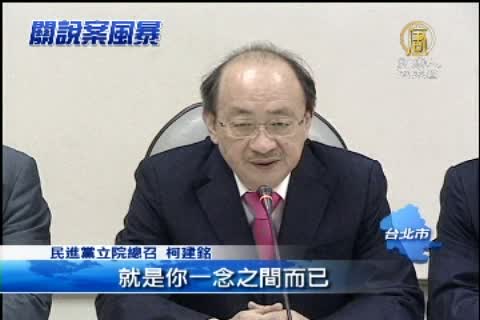 民進黨立院總召 柯建銘:「勝負不在疆場,降敵不在政權,希望馬總統你懂這道理,就是你一念之間而已,趕快反躬自省,讓台灣回歸憲政秩序。」