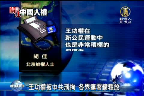 【新唐人亞太台2013年9月14日訊】支持新公民運動的知名投資人王功權,9月13號被北京市公安局以「擾亂公共場所秩序」刑拘後,大陸各界立刻發表緊急聲明,連署要求當局立刻無條件釋放,並警告說,萌芽中的公民社會正遭到全面鎮壓,中國社會正面臨最危險的時候。
