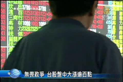 【新唐人亞太台2013年9月16日訊】無畏馬王政爭,還有中秋長假前的賣壓,台股今天(16號)一開盤跳空開高47點,一路開高走高,盤中一度大漲110點,加權指數終場上漲112.86點,收在8255.34點!雖然上週六成交量創下4年來新低,但金管會主委曾銘宗表示,非經濟因素的干擾都是短期的,要投資人不要太過緊張!反倒是這星期要討論QE退場時程,讓台股再度充滿變數!