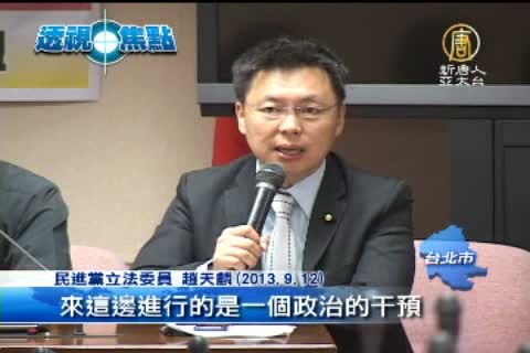 【新唐人亞太台2013年9月17日訊】上星期四立法院一場公聽會上,立委專家探討中共統戰手法,特別提醒中共滲透從宗教、服貿等經濟手段,都得格外當心,立委更爆料,早在2008年江陳會,當時陸委會主委賴幸媛不小心透露,中共片面不承認台灣國會,根本不願讓兩岸協議經過國會實質審查。