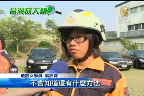 培訓女學員 翁鈺婷:「如果沒有來這邊訓練的話,不會知道還有什麼方法可以去救災這樣子。」