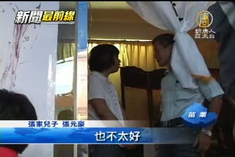 【新唐人亞太台2013年9月19日訊】苗栗大埔拒拆張藥房的屋主張森文昨天出門未歸,被發現陳屍自家附近的排水溝,被懷疑是自殺,不過家屬表示 ,雖然張森文有憂鬱症,但按時服藥,事發當晚也毫無徵兆,張家希望檢警釐清疑點。今天 (19日)下午,檢方二次勘驗現場,前民進黨主席蔡英文下午前往張家弔唁,她表示,政府最該為這件事情負責。
