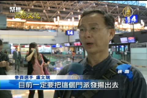 【新唐人亞太台2013年9月20日訊】第四屆「全世界華人武術大賽」9/22即將在紐約豋場,11位入圍亞太區的台灣選手,19號在桃園機場搭機,準備前往美國參加決賽,二度前往紐約的南拳武術家盧文瑞先生,帶著家師託付的使命,這次將展現從未公開的南少林拳術,他希望能把這門拳法發揚到全世界。