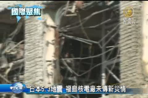 【新唐人亞太台2013年9月20日訊】美國地質調查所表示,日本福島縣今天凌晨發生規模5.3地震,但沒有引發海嘯警報。地震距離發生災變的福島第一核電廠僅約50公里,目前沒有傳出災情。不過日本氣象廳表示,今後一星期內仍會有4級左右的餘震發生。