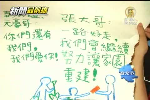 【新唐人亞太台2013年9月20日訊】大埔拒拆戶張藥局屋主張森文之死,震驚社會,民眾在網路上發起,昨晚到自由廣場前靜坐,抗議政府強拆大埔拒絕拆遷戶民宅。