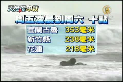 像蘭嶼地區,已經出現17級以上的破表陣風,恆春11級,大武成功10級,而從周五凌晨到周六10點,2天累積下來,宜蘭古魯353毫米,新竹縣西丘斯山,238毫米,花蓮218毫米。