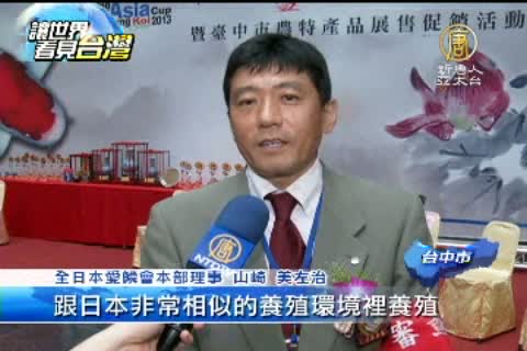 【新唐人亞太台2013年9月23日訊】2013年亞洲盃國際若鯉品評會首次在台灣舉行,地點就選在素有文化城美名的台中。來自六個國家,近700尾平日難得一見的高級觀賞魚,齊聚在台中市政府川堂參加評選,其中,單價最高的錦鯉超過新台幣500萬元,經過2天的評比,最後由台中業者飼育的大正三色,榮獲冠軍。