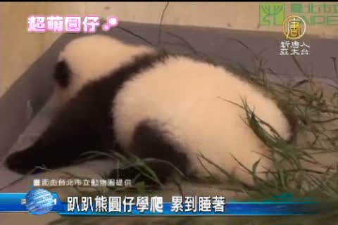【新唐人亞太台2013年9月26日訊】出生已經82天的圓仔,在媽媽圓圓的呵護下,每天除了吃和睡之外,就是努力學爬。台北市立動物園表示,目前圓仔的前肢力道還不錯,已經可以撐起上半身,保育員開始拿木板給圓仔練習爬,讓我們透過鏡頭,一起看看圓仔的可愛模樣。