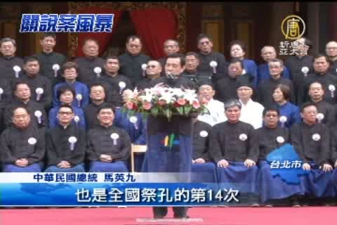 台北孔廟一早舉辦祭孔大典,台北市長郝龍斌擔任正獻官,依循37項古禮儀程隆重舉行祭孔大典。率部會首長參加的馬總統循古禮,國家元首走中門。還有大龍國小學生表演最受矚目的八佾舞。