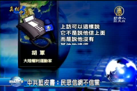 大陸權利運動家 胡軍 :「我們現在還不是說的『信上不信下』的問題了,現在就是徹底中共就沒有任何信可言了,上訪可以這樣說,它不是說他信上面,而是說他沒有其他的途徑,來表達這種訴求。 還有說一個『信法』的問題,中共它本體制就是一個踐踏法律的體制,特別是夏俊峰的案子我們可以看到,它就是對中國平民百姓進行殺戮。」