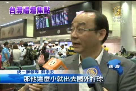 【新唐人亞太台2013年9月30日訊】上週將正式加入統一獅的旅美職棒好手郭泓志,今天返國,球團領隊率領球員,及南英商工的學弟們到場接機。帶大家到機場去看看。