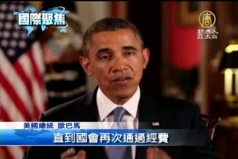 美國總統 歐巴馬:「非常不幸的,國會沒有盡到職責。未能通過預算,導致政府必須部分關閉,直到國會再次通過經費。」