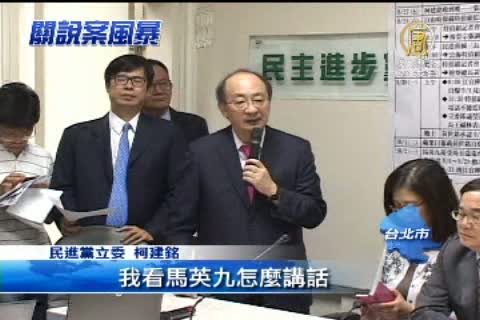 民進黨立委 柯建銘:「因為我是告訴人,所以我可以申請證據保全。當法官辦的時候,我是告訴人,要交叉詰問的,當檢察官辦的時候,他必須傳訊我,到場,我看黃世銘怎麼講話,我看馬英九怎麼講話。」