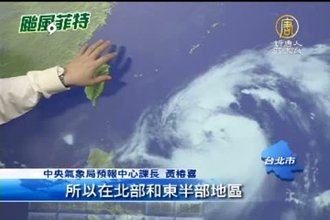 【新唐人亞太台2013年10月3日訊】可能又有颱風在週末要影響台灣了,氣象局表示,輕度颱風菲特,目前路徑偏西,朝台灣東部外海接近,不排除發展成中度颱風,最快的話,可能在星期五(4號)深夜就會發布海上颱風警報。