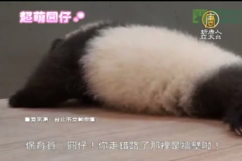 後來,動物園為了讓圓仔比較好練習爬行,開始給圓仔木板練爬。不過對肢體還不太協調的圓仔來說,爬著爬著,好像就撞到了牆壁。