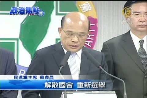 【新唐人亞太台2013年10月10日訊】馬總統發表雙十文告,民間抵制行動湧現,民進黨主席蘇貞昌今天選擇不出席國慶大典而在黨中央召開記者會宣布倒閣案,表示只要立法院院會一開,馬上提出倒閣案。