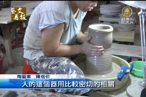 【新唐人亞太台2013年10月10日訊】台東有一對父子檔陶藝家,因為兒子陳信价在國中一年級的時候,一心想學陶藝,父子倆一起北上找老師學習,十幾年來不曾間斷,一個捏土、一個燒窯,燒出來的作品,讓許多收藏家驚豔,在全國金壺獎大賽中頻頻得獎,成為東台灣的陶藝傳奇 。