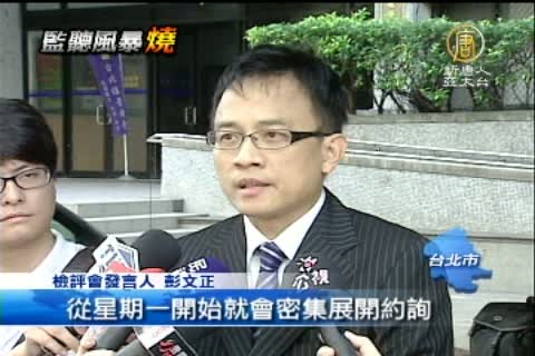 【新唐人亞太台2013年10月13日訊】檢察官評鑑委員會,針對司法關說和監聽洩密兩案,在週末加班開會,會後作出3項決議,除了前往調查局和刑事局機房,實地調查監聽作業之外,關說案也將邀請王金平和柯建銘到場說明,洩密案部分,也計劃約談馬英九和江宜樺,週一開始動作。