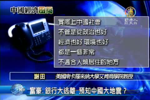 中國問題研究專家 趙遠明:「政治博奕當中,嚴重影響到經濟層面的發展。對於投資家也好,銀行家也好,貪官汙吏也好,他對這個政權不抱什麼希望,覺得早晚這個政權要垮,國家要分裂或動亂,那麼先作先期的準備,早走好過晚走。 」