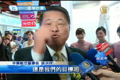 中華航空董事長 孫洪祥:「要賣一萬個Package,這是我們的目標啦。(那比去年高很多嗎?)對,去年大概五六千吧。景氣,還可以啊,你看現場這麼熱鬧,景氣不錯啦。」