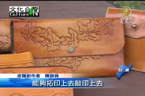 【新唐人亞太台2013年10月18日訊】台灣卑南族是個愛花的族群,在很多器物上,會刻上各種花朵或是擺上臀鈴,卑南族皮雕創作者陳靜姝透過皮雕創作,讓來自四面八方的遊客,了解卑南族文化 。