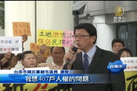 【新唐人亞太台2013年10月21日訊】台南鐵路東移案,台南市政府決定採用行政院的版本,讓拆遷戶相當不滿,自救會成員上午(21號)到台南市議會陳情與旁聽總質詢,市長賴清德面對國民黨議員謝龍介的強力質詢,雙方一度發生爭執。