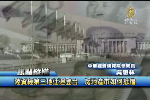 【新唐人亞太台2013年10月23日訊】外界對於陸資大鬆綁的擔心,除了可能衝擊到台灣勞工的就業,還有就是陸資炒房的問題。儘管在野黨提案修法,限縮陸資取得、設定或移轉不動產物權標的物,陸資有沒有可能是透過第三地或私募基金的管道轉進台灣,進而對台灣房地產市場帶來衝擊?今天的焦點縱橫,為您解析。