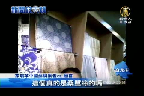 【新唐人亞太台2013年10月25日訊】許多民眾到中國旅遊,愛買蠶絲被,不過有位蔡先生今年7月跟團赴廈門旅遊,旅行團安排到「家瑞華中國絲綢」購買蠶絲被,回來蓋了之後全身發癢起疹子,送檢才發現,黑心蠶絲被竟然沒有一條真蠶絲,但卻求償無門,立委批旅行社和黑心廠商勾結收回扣,研擬修法重罰。