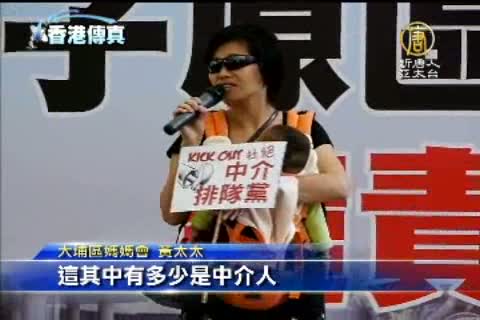 大埔區媽媽會 黃太太:「說甚麼原區保證一人一學位,原區甚麼叫原區,這其中有多少是中介人幫所謂雙非單非來排他們的學位呢?」