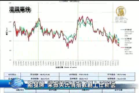 【新唐人亞太台2013年11月3日訊】香港特首梁振英罔顧憤怒的民意,至今仍然拒絕解釋不向香港電視發出免費電視牌照的理據,導致最新的民調顯示,其民情指數再創上任新低。