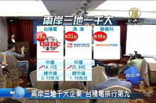 2014-04-30 21:13:38由平面雜誌調查的《兩岸三地一千大企業》排名出爐,台灣企業表現亮眼,台積電擠進前10名,排名第9,穩坐台灣企業龍頭,而鴻海則是第25名,台灣第2,聯發科也首度擠進第40名,這也是台灣近10年來,最顯著的成長,專家分析,原因跟中國經濟惡化有關。
