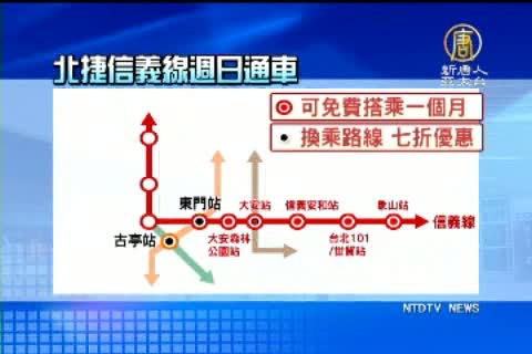 【新唐人亞太台2013年11月18日訊】接下來看到的是,期待好久的台北捷運信義線,就要在本週日(24日)通車,台北市長郝龍斌宣布,新通車路段,大安森林公園到象山共五個站點,頭一個月民眾可憑悠遊卡免費試乘,轉乘優惠也有七折優惠。一般預估,沿線商用與外圍住宅,都將受惠。