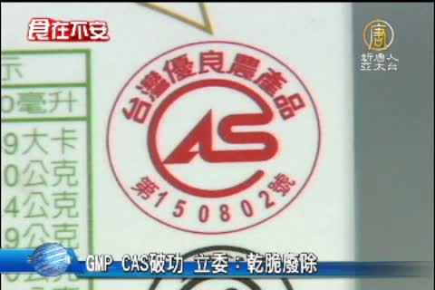 【新唐人亞太台2013年11月18日訊】黑心油風暴,毀了GMP標章的公信力,而同為國家認證的CAS標章,也因為山水米、營養午餐等食安漏洞遭到質疑,等於兩項政府掛保證的標章都破功了,立委痛批,如果經濟部和農委會不提出有效改善方案的話,乾脆將兩項標章通通廢除 。