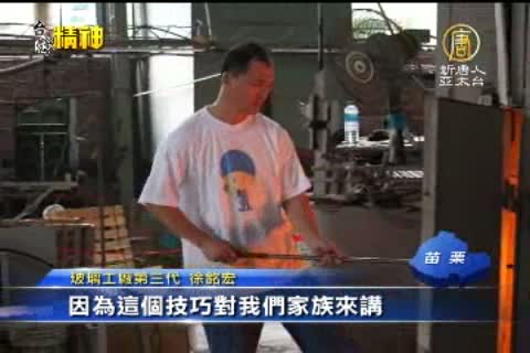 【新唐人亞太台2013年11月20日訊】隨著企業型態的轉變,產業的外移,訂單減少,台灣許多玻璃工廠都已沒落,但在苗栗竹南一家玻璃工廠,因不捨玻璃口吹的技藝失傳,將歷經三代傳承六十年的家族企業,用心經營,為的是將口吹傳統技術讓更多的人知道 。