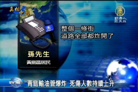【新唐人亞太台2013年11月23日訊】11月22號上午山東青島發生地下輸油管線爆炸,據大陸媒體報導,爆炸原因是管線漏油進入市政管網導致爆燃。中共官方23號中午公佈,死亡人數已經上升到47人,當地民眾估計,實際情況可能比公佈的要嚴重得多。