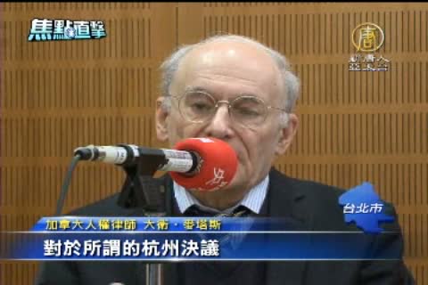 加拿大人權律師 大衛‧麥塔斯:「對於所謂的杭州決議,我的看法是,評估機制是甚麼?怎麼監督?執行?到底如何落實? 40個醫院簽署了杭州決議,是哪些醫院呢?」
