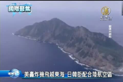 【新唐人亞太台2013年11月27日訊】中共上週六(23日)單方面宣布劃設東海防空識別區,並發布航空器識別規則公告和識別區示意圖。近日陸續遭到美、 日、韓、澳、德等官方反對,同時各國也陸續展開實際抵制活動。美國國防部今天凌晨證實,2架美軍B-52轟炸機,沒有攜帶武器,星期一由關島起飛,進入東海海域,照常執行訓練任務,停留約1小時。從關島飛抵釣魚台 後折返,並穿越東海防空識別區,全程沒有告知中國政府。