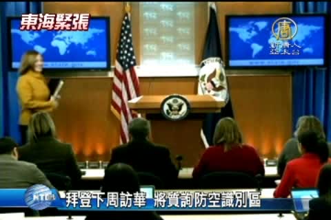 【新唐人亞太台2013年11月30日訊】美國副總統拜登將於下周出訪日本、中國、和韓國。由於中共政府日前單方面宣佈,設立東海防空識別區,引起區域臨國的不安。白宮資深官員表示,拜登訪華時,將會直接要求北京澄清此時作出這一個舉動的意圖。我們華盛頓記者的報導。