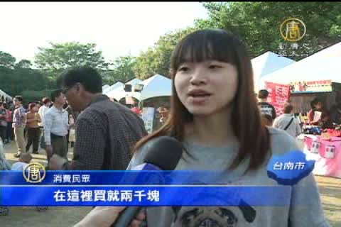 【新唐人亞太台2013年12月7日訊】年關近了,許多促銷活動紛紛登場,台南在年底推出購物活動,市府與商業理事長都希望業績能衝破10億,今天(周六)上午在台南孔廟文化園區內, 特別舉辦產品多元展售會,不少民眾前來購物搶便宜,也希望能抽到這次活動的最大獎,百萬油電複合車。