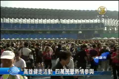 【新唐人亞太台2013年12月7日訊】今天上午,在高雄有一場用腳愛台灣、高雄動起來的健走活動,共吸引了超過4萬人參與,高雄市長陳菊也特別到場和民眾一起暖身、健走,參與的民眾從世運主場館出發,一路走到蓮池潭約8公里,大家都說,健走是非常健康的活動,未來也將持續參加。