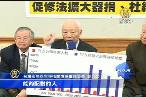 台灣國際器官移植關懷協會理事長 胡乃文:「一個移植手術大約要有10個以上的,能夠配對的人,這樣子的話,一年有一萬多手術,可能就是有10萬多,甚至於更多的人,他們受迫害了,以至於死亡了。」